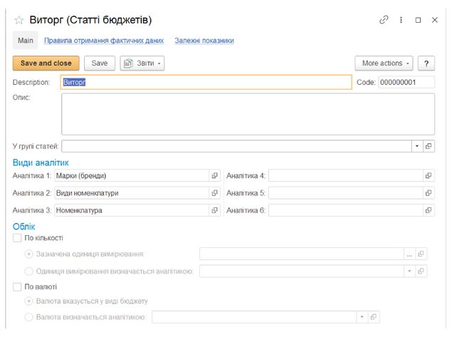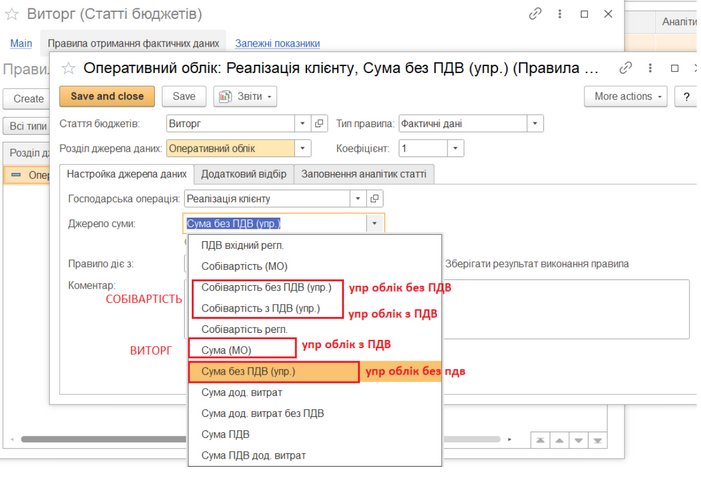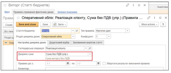 7. Налаштовуємо правила отримання фактичних даних в статтях бюджетів.