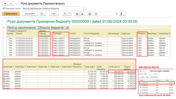 Існує можливість настройки вимоги обов'язковості наявності курсів для кожного періоду планування, тоді при вводі документа Примірник бюджету буде перевірка на наявність планових курсів в сценарії.