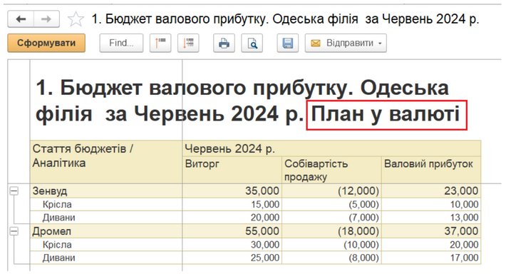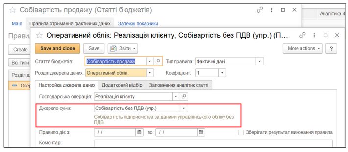Аналізу: Налаштування правил отримання фактичних даних та звірка плану/факту у валюті управлінського обліку (наприклад, USD).