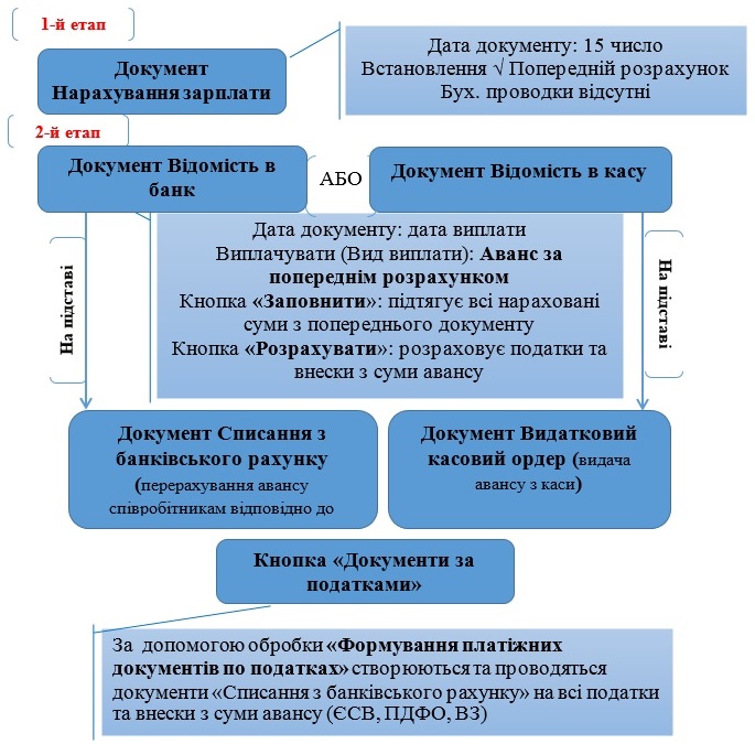 1.Нарахування та виплата авансу за фактично відпрацьований час